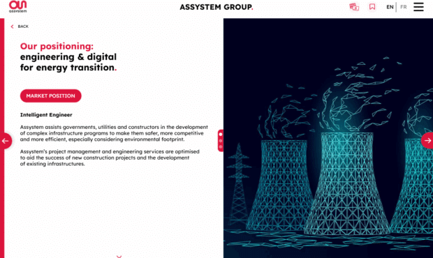 Pour Assystem, nous avons conçu une plateforme digitale dédiée à la présentation commerciale du groupe.